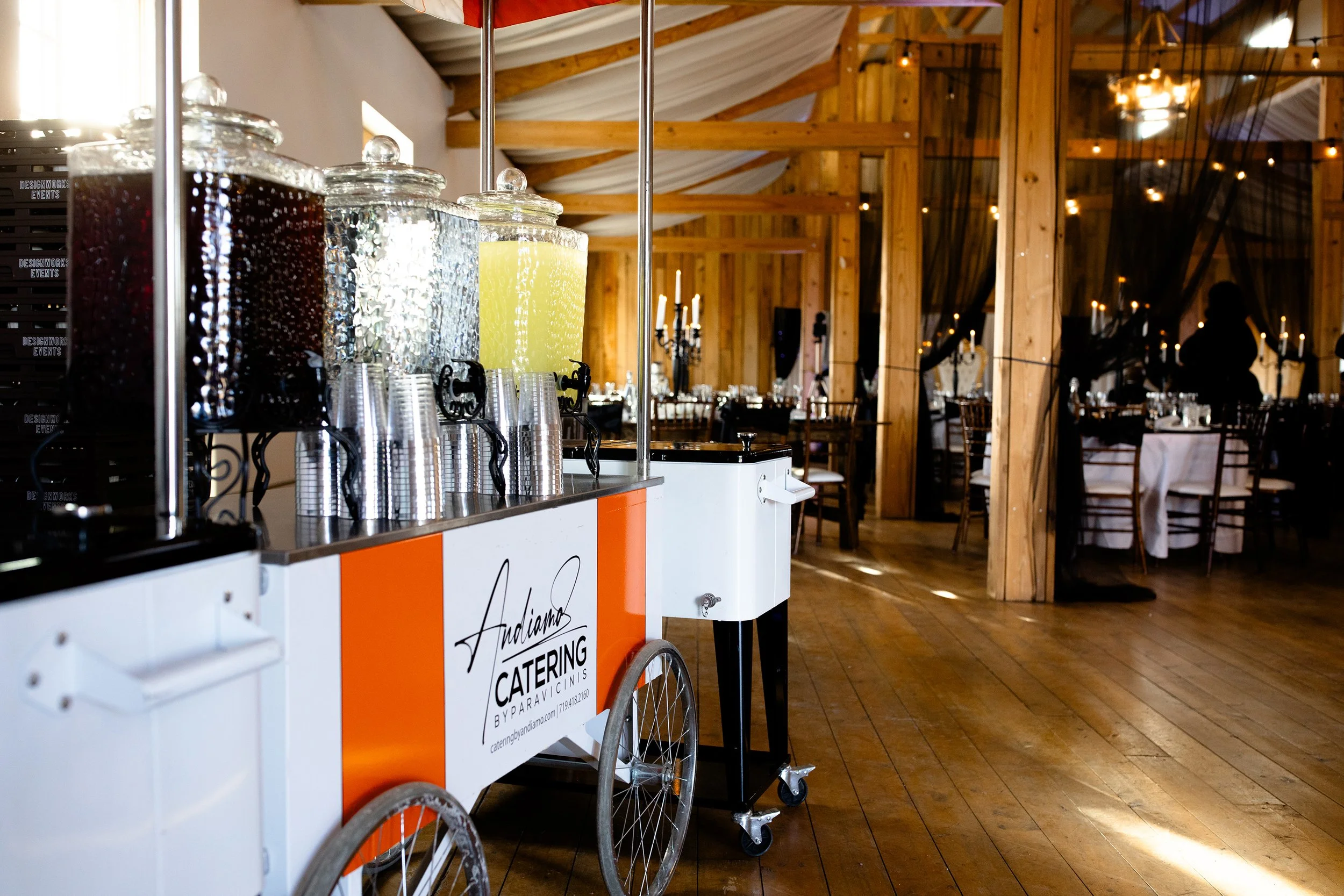 The Andiamo Catering staff provides beverage service out of a 1962 vintage trailer where we serve an assortment of ice-cold beverages and have a fully operational Italian coffee bar with freshly brewed coffee, espresso, caffè lattes and cappuccino. We also offer a full bar with a list of signature cocktails courtesy of one of our TIPS-trained and certified bartenders.