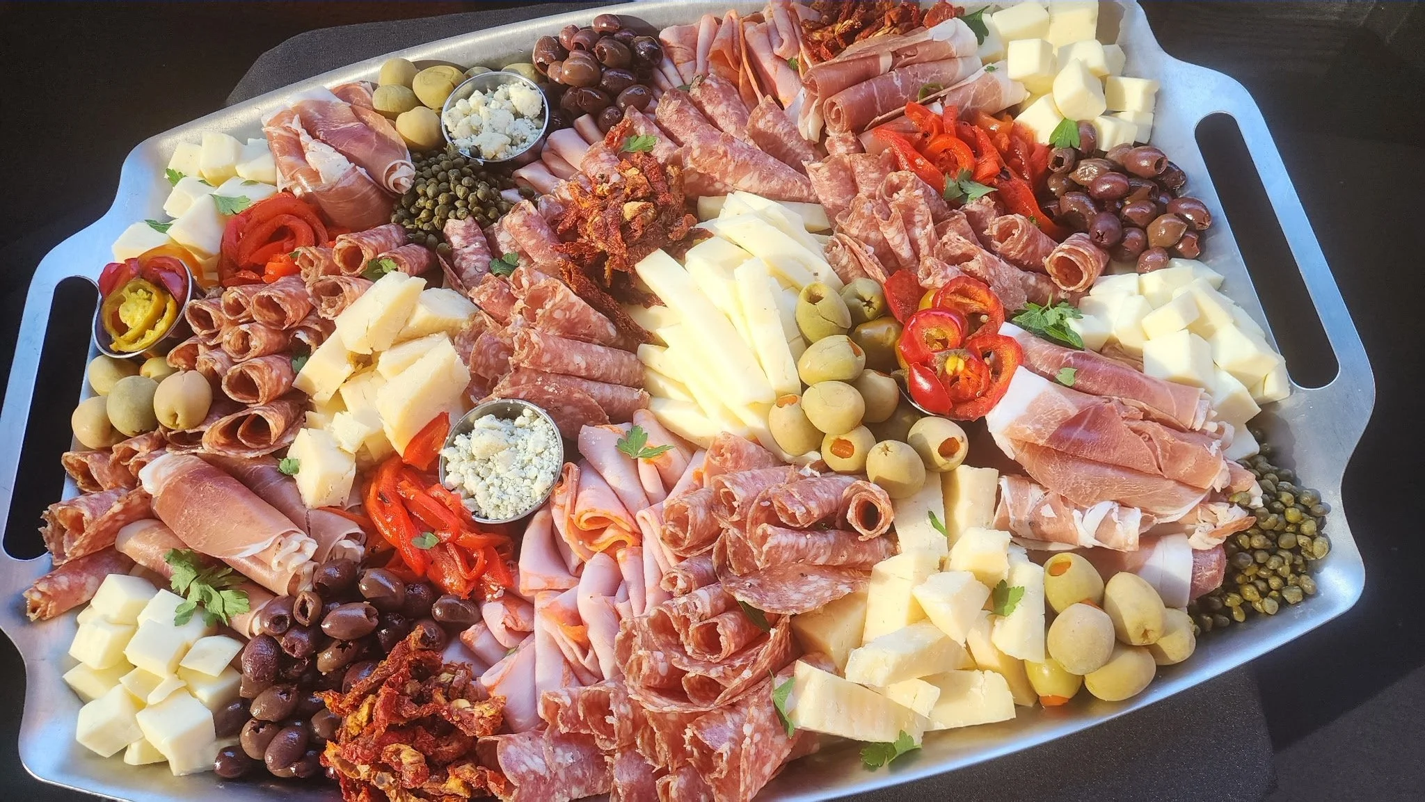 Choose from: diced traditional bruschetta tomatoes mix, basil, extra virgin olive oil, balsamic vinegar, fig jam, honey, shaved Parmesan cheese, artichokes, ricotta cheese, sun-dried tomatoes, roasted red peppers, basil pesto, roasted mushrooms, roasted tomato chutney, and olives. Served with toasted crostini bread and gluten free crackers.